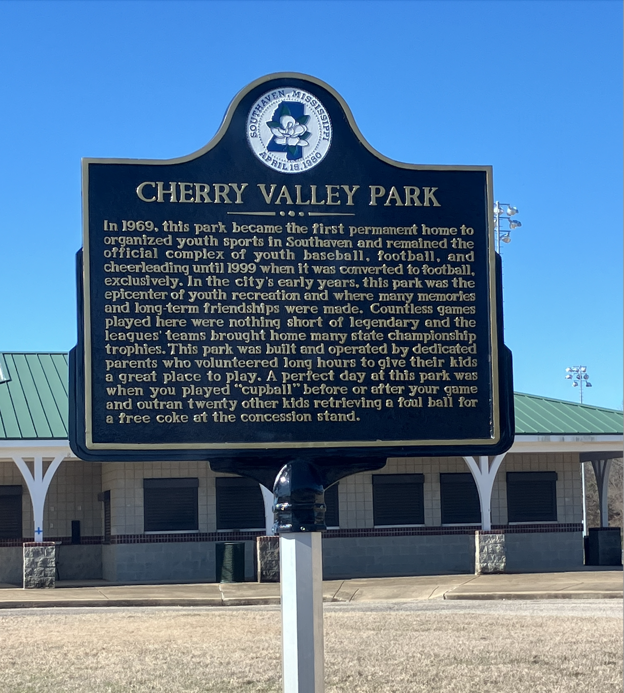 In the 80’s the park was used for church league softball games. Jerry was killed in a car wreck in 1986 after the high school prom.